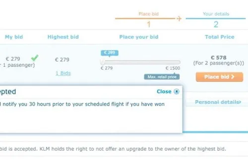 Here’s how it works: At some point in advance of your flight—usually around 72 hours before takeoff—you can either visit the airline website to place a bid or you’ll be contacted by the airline directly via an email containing a link to the relevant website to place a bid.